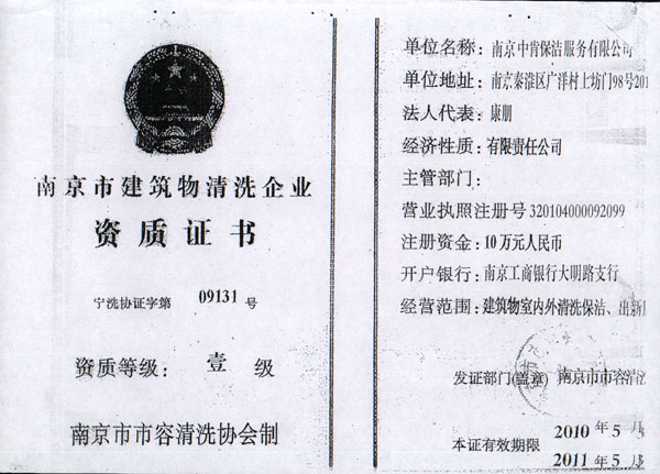 南京保潔公司注冊資金10萬元,是江蘇省家庭服務(wù)協(xié)會(huì)會(huì)員單位,江蘇省家政服務(wù)業(yè)分類執(zhí)行標(biāo)準(zhǔn)起草制定單位,先后被評(píng)為江蘇誠信服務(wù)先進(jìn)單位、南京是家政服務(wù)定點(diǎn)培訓(xùn)單位、南京市十佳建筑物清洗企業(yè)、南京市誠信示范單位、南京市鼓樓區(qū)三信三優(yōu)單位。董事長康朋是江蘇省家庭服務(wù)業(yè)協(xié)會(huì)副會(huì)長、江蘇省家政服務(wù)分類執(zhí)行標(biāo)準(zhǔn)主要起草人。